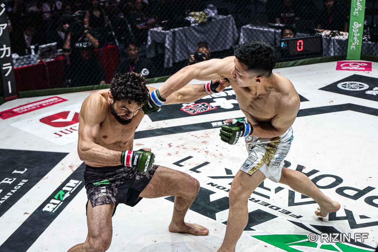 木村はワンツーで入るもケラモフはダッキングしてかわす。ケラモフはタックルで突進。これは切る木村だが、ケラモフは2度目のタックルからバックに回って立った木村にオンブとなり、フェースロック気味に極めを狙う。両者後方に倒れてグラウンドとなるが、ケラモフは4の字ロックでバックをキープ。しかし木村は向き合ってハーフマウントのような体勢となってパンチを浴びせ、両者に距離ができるとレフェリーがブレークしスタンドに戻る。