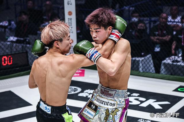 「どうですか? 面白かったですか? 地元の神戸で大きいRIZINに立たせてもらって本当にありがとうございます。これからもっともっと強くなって、格闘技界の顔になれるよう頑張っていくので、注目・応援お願いします。まずRISEのチャンピオンに必ずなるので注目していてください」
