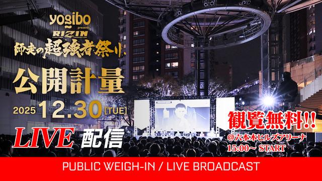 12月230日(火)15時より東京・六本木ヒルズアリーナで開催されている「ABEMA presents RIZIN冬祭り2025」にて、Yogibo presents RIZIN師走の超強者祭りの公開計量が行われるぞ!