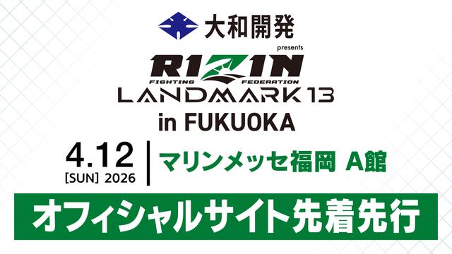 一般のお客様に先駆け、いつもRIZINを応援してくださっている皆さまへ、2月20日(金)12時から18時までの間、大和開発 presents RIZIN LANDMARK 13 in FUKUOKAのオフィシャルサイト先着先行を受付するぞ!