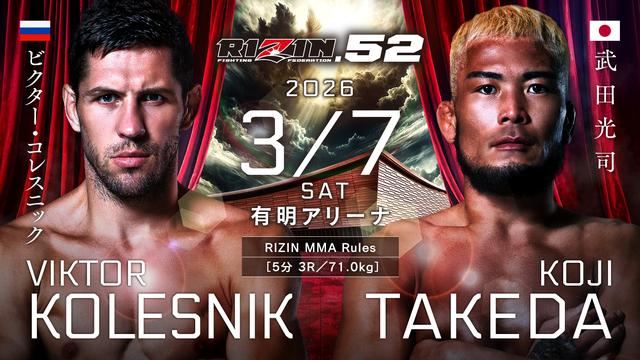相本に代わり、武田光司がコレスニックと71kg契約で対戦へ