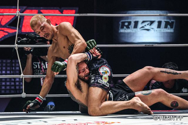 「生き残ったぞ! これ、これ。最高ですわ。センターラインの向こう側のみなさん、楽しめましたか? 持ってますから。まだまだ生き残って、RIZINも世界に向けてデッカくなっているので、選手も一緒に成長していきますので、これからも熱い試合を届けていきますので、応援お願いします。今回感じたのはどんな状況でも幸せに気づける心があれば、どんな場所にいても楽しめると思うので楽しくいきましょう。今日は最高の日になりました。楽しんだよ、俺は」