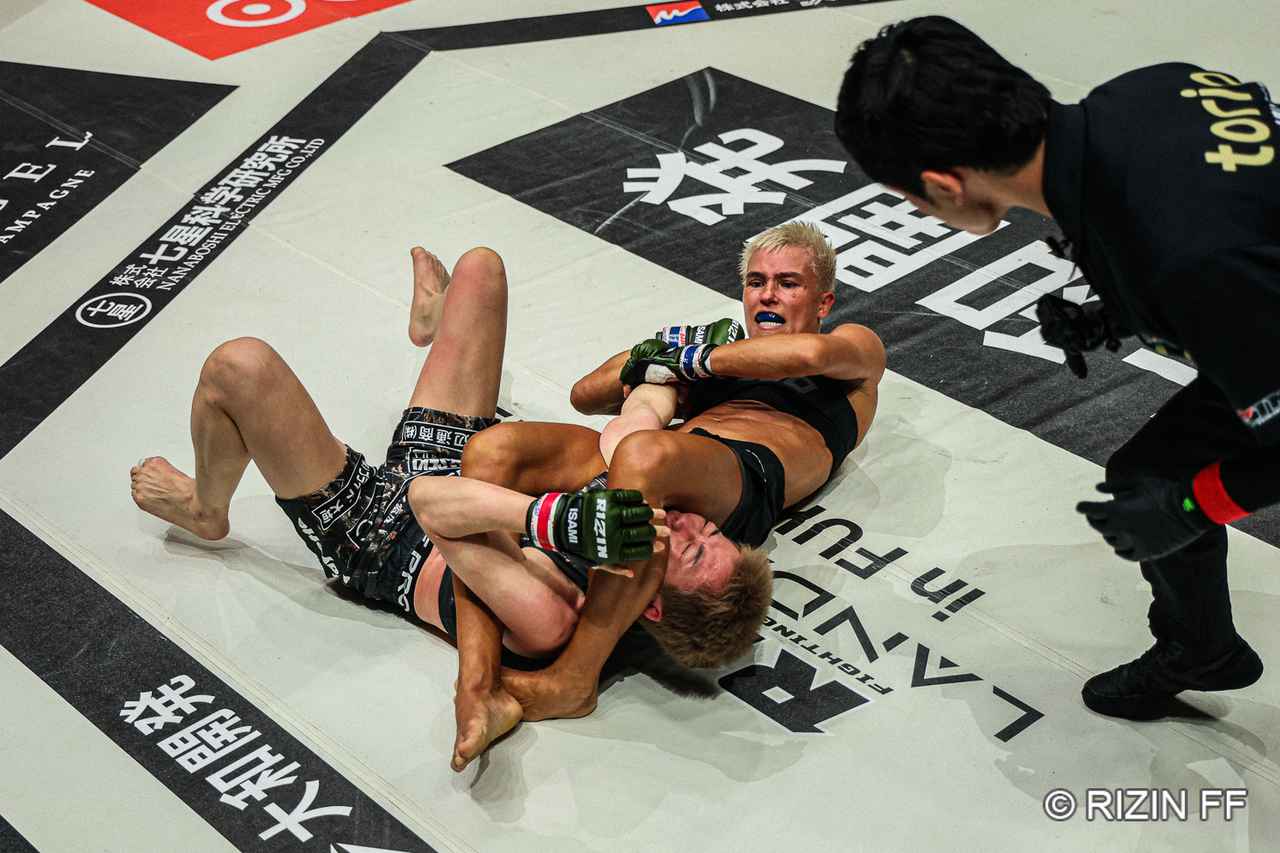 クジュティナは左右のパンチを放ちながら組みついてテイクダウン。下になった浜崎はアームロックを狙うが、クジュティナはそれを許さず浜崎を細かなパンチで打つ。ハーフでこらえていた浜崎だが、残り1分でクジュティナが足を抜きサイドポジションに。そこからじっくりセットアップを進め、最後は浜崎の右腕に腕十字。浜崎の腕を伸ばし切りタップを奪い勝利した。